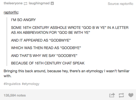 Also, there's this somewhat related post regarding the etymology of the word "goodbye" which I found interesting.